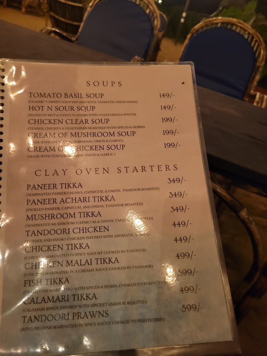 The clay oven starters bring a warm, smoky element to the table, featuring a variety of tikka options from paneer and mushroom to chicken and seafood, inviting a cozy, flavorful experience that's casual yet satisfying. These pair well with chilled drinks like a virgin mojito or a cold beer, which many find ideal for unwinding after some time in the sun.